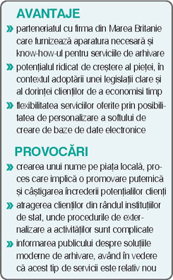 (…) „Ideea a venit de la niste prieteni din Marea Britanie care au o afacere de profil. Observând tendinta de aliniere a pietei romånesti la ceea ce se întâmpla pe pietele mature, am identificat potentialul ridicat al nevoii de solutii de arhivare a arhivei fizice pe plan local. Compania britanica ne-a devenit partener, astfel putem oferi un tip de arhivare unic in România”, respectiv arhivarea documnetelor fizice prin vidare, spune unul din reprezentantii Penta Doc-Pak. In prezent, piata locala este dominata de solutiile de digitizare a arhivelor si de cele de preluare - depozitare in locatiile firmelor specializate pe acest tip de serviciu.